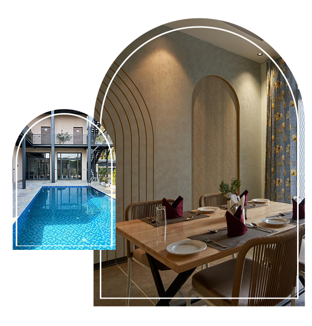 Our boutique stay goes beyond just accommodation. Relax by the swimming pool, host intimate celebrations in our lush garden for 40–50 guests, or enjoy breathtaking views and delicious meals at our rooftop restaurant. For special gatherings, our multi-purpose hall provides a versatile space, while ample parking ensures a hassle-free stay for you and your guests.